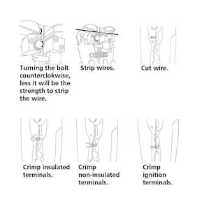 Corpo construído em aço carbono com grande durabilidade e sistema de antiferrugem.Lâminas fabricadas em aço sinterizado que garantem maior resistência com dureza entre 52 - 57 HRC.Cabos com dupla injeção.Os alicates de corte são testados quanto à resistência ao desgaste do gume de corte em máquina de ensaio específica.Os alicates possuem dureza diferenciada no gume de corte e no corpo.Possui batente para controlar e ajustar o tamanho do fio a ser desencapado.Fácil ajuste dos cabos a serem desencapados.O batente possibilita desencapar sempre um mesmo comprimento de fio que otimiza a operação posterior de crimpagem com terminais normalizados.Pino de micro ajuste que regula a intensidade da força para corte do fio.Desencapa 7 diferentes bitolas de fios 0.2 à 6.0 mm2.Corta fios de 0.2 à 6.0 mm2.Crimpa 3 diferentes tipos de terminais: com isolamento, sem isolamento de 10 - 22 AWG (0.5 mm2 à 6.0 mm2 ) e de ignição de 7 mm à 8 mm.Uso nos segmentos industrial e elétrico.As ferramentas são produzidas e testadas conforme normas específicas.