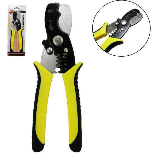 Informações adicionais: Ean: 7898649551662 Validade: indeterminada Tamanho aproximado do alicate: 7'' Tamanho aproximado da embalagem: a:23xl:8cm Peso aproximado: 215g Tipo de produto: alicate desencapador de fios Cor: amarelo e preto Composição: plastico e metal Ean: 7898649551662