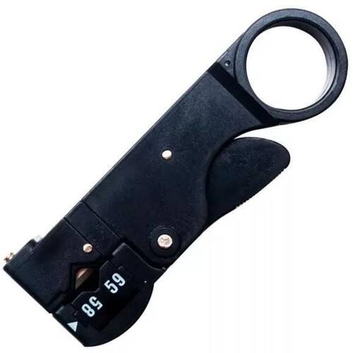 Alicate Desencapador Rotatório 4 Pol Para Cabo Coaxial-Bel O desencapador rotatório possui design leve, proporcionando praticidade e desempenho, sendo fácil o ajuste dos cabos a serem desencapados. O produto é produzido com ABS injetado e lâminas em aço inoxidável. Possui regulagem de altura das lâminas conforme o diâmetro doc abo coaxial, a aplicação para desencapar cabos coaxiais RG-58 / 59 / 62 / 3C / 4C. Especificações técnicas: Fácil o ajuste dos cabos a serem desencapados Produzido com ABS injetado e lâminas em aço inoxidável Regulagem de altura das lâminas - : 3 meses - Marca: Bel Fix Marca: Não Informado