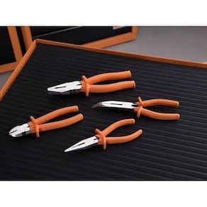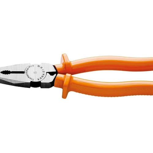 Alicate Eletricista Isolado 1000 V 8 Tramontina PROVersátil, o alicate universal da Tramontina PRO foi projetado para ser utilizado nas mais diversas operações, como puxar, prender, enrolar, deformar e cortar. A ferramenta certa para você que trabalha na indústria ou oficinas mecânicas.Informações GeraisForjada em aço cromo vanádio. Cabeça e articulação polidas. Têmpera total no corpo. Têmpera por indução no gume de corte. Maior arresta de corte para facilitar o trabalho em uma ampla gama de bitolas de fios. Ranhuras cruzadas no bico para maior agarre. Dispositivo para prensar terminais de bitolas até 10 mm sem isolação. Isolação elétrica de 1.000 V CA. Produto em conformidade com a NBR9699 e NR10. Os alicates de corte são testados quanto à resistência ao desgaste do gume de corte em máquina de ensaio específica. Os alicates possuem dureza diferenciada no gume de corte e no corpo. Os alicates também são testados com relação à aderência das empunhaduras de PVC. Um ensaio de extrema importância analisa o grau de isolação do revestimento aplicado sobre os cabos dos alicates isolados, e que promove segurança na sua utilização em locais com tensões de até 1.000 V CA. Puxar, prender, enrolar, deformar e cortar arames e chapas finas. Prensar terminais de bitolas até 10 mm sem isolação. As ferramentas são produzidas e testadas conforme normas específicas.Uso seguro e adequadoUse óculos, luvas e outros equipamentos de proteção individual (EPIs) de acordo com a tarefa a ser executada. Observe as indicações de uso de cada tipo de alicate. Nunca utilize um alicate para cortar arames endurecidos, a não ser que tenha sido projetado para este fim. Nunca utilize o alicate como martelo. Ele pode trincar ou até mesmo quebrar. Nunca exponha os alicates ao calor excessivo. Isto pode alterar o tratamento térmico aplicado no corte e afetar o seu desempenho. Sempre posicione o corte do alicate perpendicularmente ao eixo do arame para uma operação mais rápida e segura. Utilize alicates isolados, identificados pela marcação 1.000 V no cabo, quando for necessário trabalhar em locais com corrente elétrica. Importante: nestes casos, inspecione a integridade da isolação elétrica, e, se aparecerem trincas na isolação, suspenda o uso imediatamente. Nunca aumente o comprimento dos cabos dos alicates. Isto amplifica a força exercida sobre a cabeça da ferramenta podendo quebrá-la. Nunca utilize o alicate em porcas e parafusos. Para estes trabalhos, indica-se o uso de chaves de aperto. Lubrifique periodicamente a articulação. Isto aumenta a vida útil do produto e melhora sua performance. Manter os alicates longe do alcance de crianças. Armazene em local limpo e seco.Garantia: 90 dias para vícios ou defeitos de fabricação.
