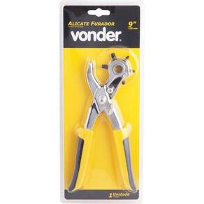 Alicate Furador Vazador 9 2,5mm à 5,0mm Vonder Conteúdo da embalagem 1 Alicate furador Aplicações e dicas de uso Indicado para furar couro, papel, papelão, plástico, cortiça, entre outros materiais Destaques e diferenciais Possui acabamento cromado que proporciona maior resistência à corrosão/oxidação, cabeça giratória com 6 bicos e cabo emborrachado que confere maior conforto ao operador DETALHES TÉCNICOS