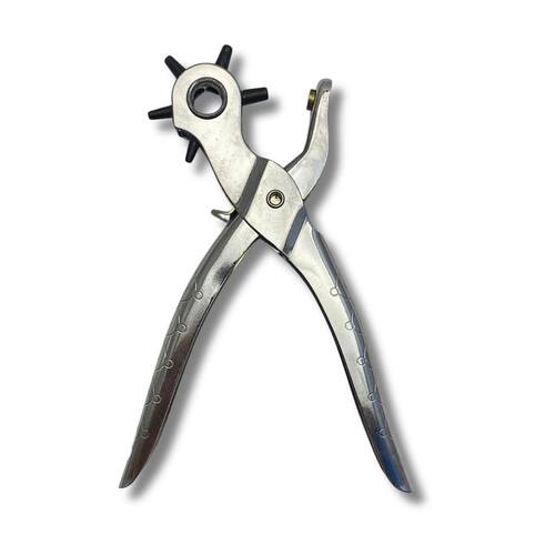 Alicate furador vazador couro eva 6 furos 2,5 até 5mm cinto chinelo artesanato reforçado 200mm - alicate fura cintos vazador - comprimento do alicate: 200mm - material: aço carbono - quantidade de pinos: 6 - tamanho das furações: 2,5mm/ 3,0mm/ 3,5mm/ 4,0mm/ 4,5mm/ 5,0mm - diferencial do produto: robusto