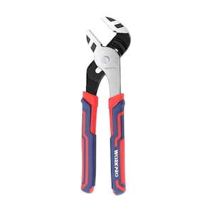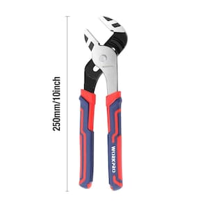 WORKPRO Alicate de junta de ranhura de 25 cm, alicate de bomba de água ajustável em aço CRV para reparo doméstico, aderência, porcas, parafusos, tubos e acessórios - Revestimento eletroforético transparente e coberto ajudará a evitar ferrugem. Limpe estes alicates antes de usar e guarde-os em um ambiente seco - Feito de aço 50CrV com superfície tratada termicamente e escurecimento garantirá maior dureza, melhor força de fixação, resistência e durabilidade. Bordas de corte endurecidas para maior facilidade de corte e polimento fino para resistência à corrosão - Alça bi-material para aderência antiderrapante e confortável, acabamento requintado com 3 cores oferece um lindo visual para você - Dureza tratada termicamente 45-50 HRC - Capacidade de mandíbula ajustável de 5 cm com 7 posições diferentes para melhor agarrar e girar