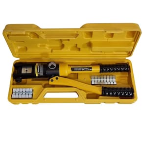Alicate hidráulico 10 a 120mm prensa crimpa terminal 8 ton charbs Alicate hidráulico prensa crimpa terminais 10 a 120mm charbs. Acompanha 8 matrizes hexagonais: 10, 16, 25, 35, 50, 70, 95 e 120 mm. Com 8 toneladas máxima é exclusivamente para crimpagem de terminais em cabos de alumínio ou cobre. - marca: charbs - modelo: ch00276 - material: estrutura em aço carbono - cor: amarelo/preto - força máxima: 8 toneladas - curso máximo: 14mm - secção de cabo 10-120 mm - conjunto de 8 matrizes hexagonais mm 10, 16, 25, 35, 50, 70, 95 e 120 - alicate hidráulico com 8 toneladas máxima é exclusivamente para crimpagem de terminais em cabos de alumínio ou cobre - compatível com as especificações din, awg, jis, acompanha 8 matrizes para facilitar a operação e é ideal para manutenção em redes públicas, fabricantes e instaladores de painéis elétricos, instaladores de cabines elétricas e subtensões de energia, empreiteiros de montagem elétrica e industrial, departamento de manutenção de grandes indústrias - feito em de aço carbono de qualidade e com excelente acabamento, este alicate apresenta boa dureza e alta resistência - devido ao seu excelente design ergonômico, a alça é confortável para facilitar a pega. - tamanho da embalagem: 43x18x9cm - peso bruto: 4kg - : 90 dias Itens inclusos: - 1 alicate hidráulico - 8 matrizes: 10,16, 25, 35, 50, 70, 95 e 120 - 1 jogo de anéis de vedação - 1 maleta