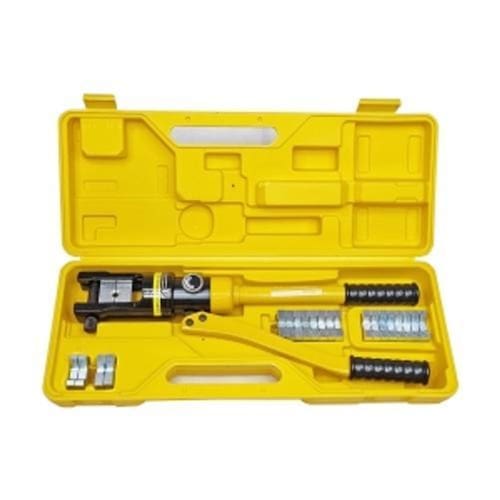 Dimensões da embalagem: 52cm x 20cm x 9cm; Peso: 6kg Faixa de crimpagem: Cu 10-300mm; Tipo de crimpagem: Hexagonal; Força de crimpagem: 12t Matrizes de crimpagem: 10/16/25/35/50/70/95/120/150/185/240/300mm.