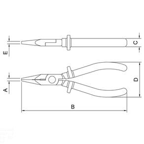 Por ter o bico longo, é muito utilizado nos serviços elétricos e de telefonia. Sua mandíbula possui espaço para corte de arames e espaço serrilhado para pegar objetos e mantê-los firmes. A ferramenta certa para você que trabalha na indústria ou oficinas mecânicas. Orientações Forjado em aço cromo vanádio. Cabeça e articulação polidas. Têmpera total no corpo. Têmpera por indução no gume de corte.Isolação elétrica de 1.000 V CA. Produto em conformidade com a NBR9699 e NR10.DIN ISO 5745.Os alicates de corte são testados quanto à resistência ao desgaste do gume de corte em máquina de ensaio específica.Os alicates possuem dureza diferenciada no gume de corte e no corpo.Os alicates também são testados com relação à aderência das empunhaduras de PVC.Um ensaio de extrema importância analisa o grau de isolação do revestimento aplicado sobre os cabos dos alicates isolados, e que promove segurança na sua utilização em locais com tensões de até 1.000 V CA.Cortar, prender e dobrar cabos e arames.Utilizado em trabalhos de telefonia.As ferramentas são produzidas e testadas conforme normas específicas. Características Gerais EAN13 7891114024043 DUN14 17891114024040 NCM 8203.20.10 Peso Líquido 0,1600 kg. Peso Bruto 0,1600 kg. Metragem 0,000462 m³. Dimensões Embalagem (Compr. X Larg. X Alt.) 220x 70x 30 mm. Dimensões Produto (Compr. X Larg. X Alt.) 170x 54x 13 mm. Cor 1 EF8134 Hexa Dimensão Extra A 3,5 mm. Dimensão Extra B 170,0 mm. Dimensão Extra C 13,0 mm. Dimensão Extra D 54,0 mm. Dimensão Extra E 2,7 mm. Observações Use óculos, luvas e outros equipamentos de proteção individual (EPIs) de acordo com a tarefa a ser executada. Observe as indicações de uso de cada tipo de alicate. Nunca utilize um alicate para cortar arames endurecidos, a não ser que tenha sido projetado para este fim. Nunca utilize o alicate como martelo. Ele pode trincar ou até mesmo quebrar. Nunca exponha os alicates ao calor excessivo. Isto pode alterar o tratamento térmico aplicado no corte e afetar o seu desempenho. Sempre posicione o corte do alicate perpendicularmente ao eixo do arame para uma operação mais rápida e segura. Utilize alicates isolados, identificados pela marcação 1.000 V no cabo, quando for necessário trabalhar em locais com corrente elétrica. Importante: nestes casos, inspecione a integridade da isolação elétrica, e, se aparecerem trincas na isolação, suspenda o uso imediatamente. Nunca aumente o comprimento dos cabos dos alicates. Isto amplifica a força exercida sobre a cabeça da ferramenta podendo quebrá-la. Nunca utilize o alicate em porcas e parafusos. Para estes trabalhos, indica-se o uso de chaves de aperto. Lubrifique periodicamente a articulação. Isto aumenta a vida útil do produto e melhora sua performance. Manter os alicates longe do alcance de crianças. Armazene em local limpo e seco.