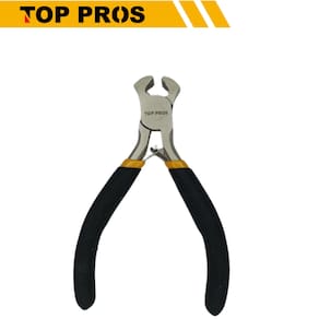 O mini alicate de corte 4,5 polegadas, composto por aço niquelado e polipropileno com borracha termoplástica. Ferramenta manual portátil desenvolvida para cortar materiais como fios, cabos, arames e outros objetos semelhantes de forma precisa ou em locais de difícil acesso. A característica que o diferencia é a lâmina de corte localizada na extremidade frontal da mandíbula, o que permite ao usuário cortar materiais muito próximo de uma superfície, além de ser eficaz para extração de pregos, pequenos parafusos e pingentes. A marca Top Pros é reconhecida pela excelência na qualidade e praticidade dos seus produtos. Ela faz parte de um grupo de outras marcas já fortemente reconhecidas no ramo de persianas, decoração, bazar e utilidades domésticas e agora traz o seu conhecimento na área das ferramentas.