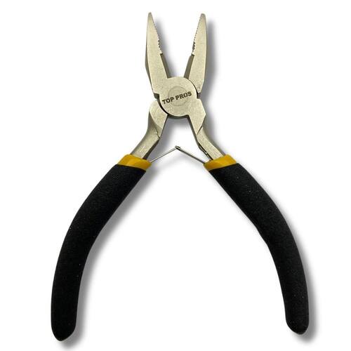 O mini alicate universal 4,5 polegadas é composto por aço niquelado e polipropileno com borracha Termoplástica. Ferramenta portátil e versátil, desenvolvida para cortar fios, segurar objetos, Dobrar materiais finos e realizar pequenos reparos. A niquelação é uma camada de revestimento que protege o alicate de corrosão. A marca top pros é reconhecida pela excelência na qualidade e praticidade dos seus produtos. Ela faz parte de um grupo de outras marcas já fortemente reconhecidas no ramo de persianas, decoração, Bazar e utilidades domésticas e agora traz o seu conhecimento na área das ferramentas.