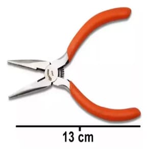 Os alicates de modo geral tem como objetivo principal multiplicar tecnicamente a força do usuário, através de uma alavanca exercida no cabo que é multiplicada e transferida para a cabeça do alicate.Há uma grande variedade de marcas e também de modelos disponíveis no mercado, mas, cada tipo de alicate possui uma FUNÇÃO especifica conforme seu formato e confecção.Esse modelo é conhecido como meia cana e pode ser utilizado para diversas atividades, sendo ideal para bijuterias, reparos em aparelhos eletrônicos, jardinagem, artesanato, pescaria, serviços elétricos / mecânicos, corte de fios, torção de cabos e arames!Confeccionado com material de alta qualidade, esse alicate é feito em Aço Carbono e possui peso de aproximadamente 78 g.Suas dimensões são de 13 cm de comprimento, cerca de 5 cm de largura e 1 cm de espessura.Ideal para você que procura um alicate com excelente custo benefício e alto nível de qualidade. Item indispensável para ter em sua caixa de ferramentas.CUIDADOS COM O EQUIPAMENTO:- Não utilize em aparelhos energizados. Ferramenta não isolada;- Para reduzir o risco de lesões, sempre use adequadamente equipamentos de proteção individual (óculos de proteção, botas, luvas, etc...), necessários conforme sua jornada de trabalho;- Use a ferramenta correta para sua aplicação. Não force a ferramenta. A ferramenta correta fará o trabalho melhor e mais seguro se utilizada para aquilo que foi projetada;- Guarde em local seguro;- Manter fora do alcance das crianças.Especificações Técnicas:- Marca: Western- Origem: China- Referência fabricante: A-8- Modelo: Alicate Miniatura Bico Meia Cana Aço Carbono A-8 13 cm - Western- Cor: Azul / Laranja- Material: Aço Carbono- Corte com precisão- Cabo emborrachado antideslizante- Com mola- Função: Serviços gerais- Indicado: Bijuterias, reparos em aparelhos eletrônicos, jardinagem, artesanato, pescaria, serviços elétricos, corte de fios, torção de cabos e arames- Peso: 82 g- Dimensões ( A x L x C ): 1 cm x 5 cm x 13 cm- Peso embalagem: 95 g- Dimensões embalagem ( A x L x C ): 1.5 cm x 8.5 cm x 18.5 cmItens Inclusos: 01 Alicate Miniatura Bico Meia Cana Aço Carbono A-8 13 cm da marca Western.