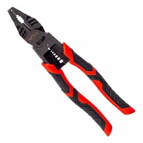Alicate multifuncional universal Foi desenvolvido para ser multifunção e trabalho pesado. Ele possui o melhor de cada função em uma só ferramenta. É possível fazer funções de fixação descasque de fios e super fixação , chave apertar ou desapertar , corte arames, fios , crimpagem fios de fixação, flexão, descascar, friso e decapagem remoções . Tudo isso em uma estrutura bem construída em um alicate fabricado em cromo vanádio, lâmina em aço 65mn e empunhadura emborrachada e ergonômica. Os alicates universal multifuncional possuem cabo de borracha isolado até 1000v e nr10 de conformidade à normativa abnt nbr 9699. Todos os alicates isolados não são resistentes a curto-circuito, sendo assim para sua segurança sempre execute serviços com a rede desenergizada, evitando assim possíveis acidentes e danos ao operador e ferramenta.