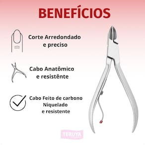 Corte preciso e arredondado, ideal para unhas das mãos e pés, com lâmina curva afiada.