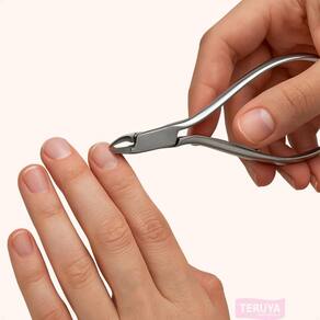 Posicione o Alicate Mundial Classic na unha, iniciando o corte por um dos cantos.