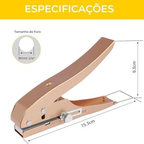 Alicate Perfurador 8mm Tapa Furos para Fita de Borda marca: Vaz - Referência: 21719-8mm - Cria tapa furos de 8mm - Com um simples aperto, o Alicate Tapa Furos corta a fita de borda com precisão, proporcionando um acabamento perfeito em seus projetos - Projetado para trabalhar com fitas de borda, este alicate é compatível também com uma ampla variedade de materiais e superfícies - Perfeito para perfurar furos em fita de borda, cartões bancários, PVC, filme duro e folheado - Capacidade máxima de perfuração: :: PVC até 1,5 mm :: Papel até 2,5 mm 15 a 20 papéis A4 :: Madeira até 2mm :: Couro até 2 mm - Fabricado em liga de zinco de alta qualidade - Localizador de Precisão: Equipado com um dispositivo para medir exatamente a distância do furo até a borda do material. - Dimensões: 15,3 x 9,3cm - Peso bruto: 275 gramas - : 90 dias Marca: Não Informado
