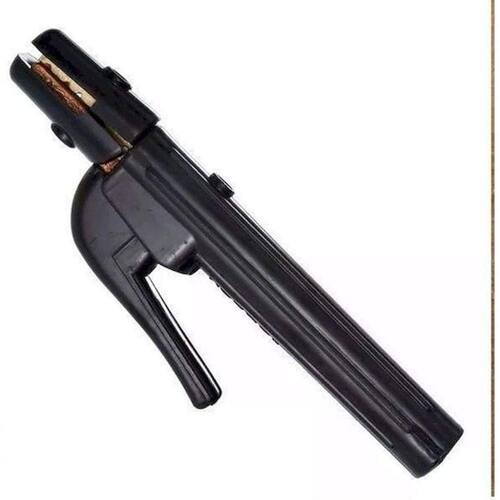 Alicate porta eletrodo cabo ergonômico de nylon que acomoda perfeitamente a mão e reduz a fadiga , mola 100% isolada, alta resistência, capacidade de até 500 Amperes, mandíbula com 160 g de bronze, evita superaquecimento, prende o eletrodo revestido e transfere para ele a corrente de solda.