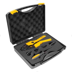 Itens que Acompanham: 01 Maleta plástica. 01 Jogo para prensar terminais tipo isolados (0,5 mm² - 6 mm²). 01 Jogo para prensar terminais não isolados do tipo aberto de (0,5 mm² - 6 mm²). 01 Jogo para prensar terminais tipo não isolados de (1,5 mm² - 6 mm²). 01 Jogo para prensar terminais isolados e não isolados do tipo tubular (0.5 mm² - 6.0 mm²). 01 Jogo para prensar terminais isolados e não isolados do tipo tubular (10 mm² - 16 mm² - 25 mm² - 35 mm²). 01 Chave phillips.