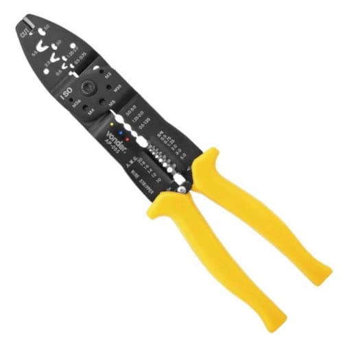 Descrição: Indicado para prensar terminais pré-isolados fêmea, macho, forquilha (garfo), anel e pino, não isolados anel e forquilha (garfo), para cortar fios e
