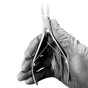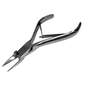 Alicate fabricado em aço inoxidável de alta qualidade, com lâminas finas e alongadas ideal para cortes precisos em regiões estreitas. O modelo conta com molas duplas para movimento leve, cabo ergonômico e acabamento polido. Dimensões aproximadas: comprimento total 13,1 cm; área ativa de corte 39,5 mm; peso 70 g. Produzido com materiais resistentes à corrosão e compatível com métodos convencionais de higienização. Indicação de uso: cortes finos e ajustes delicados que exigem precisão e controle em tarefas manuais.