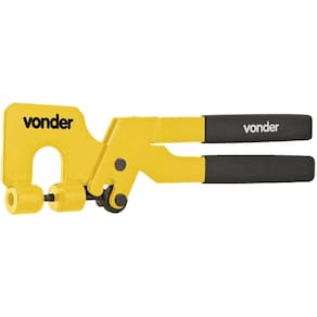 Descrição do Produto: Alicate puncionador para drywall AP 300 VONDER Indicado para puncionar e unir a estrutura metálica de divisórias de drywall. Diâmetro do punção: 5,0 mm. Corpo em chapa de aço estampado com cabo plastificado, proporcionando melhor manuseio - Material do corpo do alicate: Chapa de aço e plástico - Acabamento do alicate: Pintado - Comprimento total do alicate: 12 - 305 mm - Capacidade de abertura: 10 mm