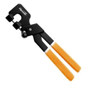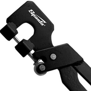 FERRAMENTA PROJETADA PARA PUNCIONAR E UNIR ESTRUTURA METÁLICA DE DIVISÓRIAS DE DRYWALL. O MECANISMO DE ALAVANCA ÚNICA PERMITE A REALIZAÇÃO DA OPERAÇÃO COM APENAS UMA DAS MÃOS. CABO DE METAL EMBORRACHADO, PROPORCIONANDO MELHOR MANUSEIO.