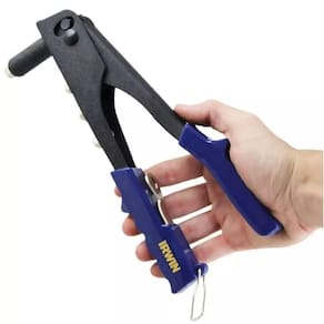 Alicate Rebitador Manual Irwin R100 10.5 Ferramenta articulada que serve fundamentalmente para unir dois ou mais materiais através de rebites de repuxo de forma segura e eficaz. - Rebitador com o corpo em aço de alta performance com espessura de 2,0 milímetros e castanhas internas em aço cromo molibdênio; - Possui cabo emborrachado e antideslizante para maior conforto e segurança durante o uso; - Mais para pequenos reparos e fixação para os usuários da construção e profissionais da mecânica; - Aplicação exclusiva em rebites de alumínio; - Tamanho: 10.5" polegadas. Acompanha 4 bicos para diferentes tamanhos de rebites e chave para troca: - 2,4 mm 3/32 - 3,2 mm 1/8 - 4,0 mm 5/32 - 4,8 mm 3/16 Marca: Não Informado