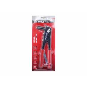 Alicate rebitador manual 225 mm para rebite de 2-8 mm mtx Possui corpo em chapa de aço estampado que proporciona maior resistência na utilização, chave para substituição dos bicos e cabo plastificado para maior conforto durante o manuseio. Indicado para unir peças, como: chapas, tubos, perfis, entre outras, através de rebites de repuxo. Características técnicas: - material do corpo do rebitador: aço estampado - quantidade de bicos do rebitador: 04 bicos - tipo do rebite indicado: alumínio - diâmetro dos rebites: 2,4 mm, 3,2 mm, 4,0 mm, 4,8 mm