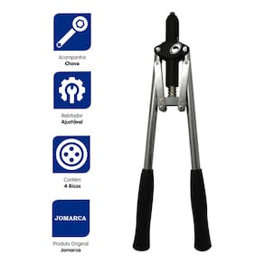 O Alicate Rebitador Profissional Tipo Alavanca Jomarca é a ferramenta ideal para trabalhos de fixação rápida, eficiente e precisa. Projetado com a qualidade que só a Jomarca oferece, ele é perfeito para aplicações em chapas metálicas, plásticos e outros materiais, atendendo desde pequenos reparos domésticos até projetos profissionais.