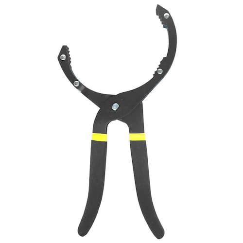 Alicate Sacador Filtro De Óleo 80-120Mm F&M - Perfeito para remover grandes filtros de óleo rotativos; - Construção laminada resistente; - Mandíbulas serrilhadas Ajustáveis; - Alças de aperto antiderrapante; Ficha técnica - Modelo: Sacador Marca: F. M
