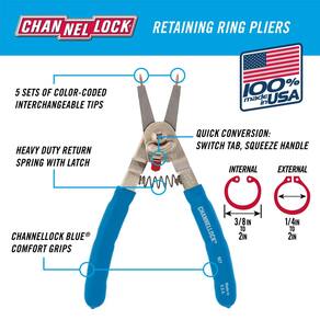 Alicate Snap Ring Channellock 927 de 8 polegadas | Alicate de anel de retenção Circlip de precisão | Inclui 5 pares de pontas intercambiáveis | Fabricado nos EUA