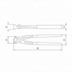 Ref.: 44046125. Marca: Tramontina. Forjada em aço carbono especial. Topo da cabeça e laterais polidas. Têmpera total. Corpo fosfatizado. Cabos com revestimento especial. Os alicates de corte são testados quanto à resistência ao desgaste do gume de corte em máquina de ensaio específica. Os alicates possuem dureza diferenciada no gume de corte e no corpo. Fechar abraçadeiras de juntas homocinéticas. As ferramentas são produzidas e testadas conforme normas específicas. Medidas (Vide segunda imagem): A: 36mm. B: 250mm. C: 16mm. D: 49mm. E: 23,5mm. Peso: 420g.