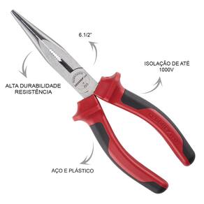 Benefícios: - Alta durabilidade devido à composição em aço de alta qualidade. - Segurança com empunhadura isolada. - Precisão em trabalhos detalhados com bico reto. - Ergonomia que proporciona conforto durante o uso prolongado.
