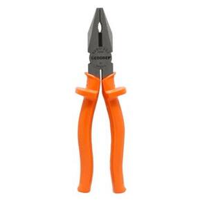 Alicate isolado com corpo em aço Gedore-Vanadium e empunhadura em polímero anti-chamas laranja. Ergonômico e antideslizante, atende normas de segurança NR 10 e NBR 9699 para isolação até 1000V. Faces lixadas, tratamento térmico total, corte temperado por indução (62 - 65 HRC). Inclui embalagem autoserviço. Permite cortar, puxar, segurar e dobrar fios. Indicado para cortar todos os tipos de arame, inclusive arame com dureza média, diâmetro máximo de Ø 1,6 mm e resistência à tração de 1600 N/mm².