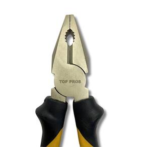 O Alicate Universal 8 polegadas, composto por aço niquelado e polipropileno com borracha termoplástica é uma ferramenta manual versátil usada para agarrar, torcer, cortar e manipular diversos tipos de materiais, como fios, cabos pregos e muito mais. A niquelação é uma camada de revestimento que protege o alicate de corrosão. A marca Top Pros é reconhecida pela excelência na qualidade e praticidade dos seus produtos. Ela faz parte de um grupo de outras marcas já fortemente reconhecidas no ramo de persianas, decoração, bazar e utilidades domésticas e agora traz o seu conhecimento na área das ferramentas.