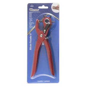 Alicate vazador 8 6 furos O alicate vazador é indicado para furar cintos, coleiras, sapatos, chinelos e etc. Para uso em materiais como: - Couro; - Cortiça; - EVA; - Borracha; - Papelão.