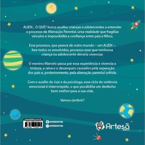 ALIEN... O QUÊ? busca auxiliar crianças e adolescentes a entender o processo da Alienação Parental, uma realidade que fragiliza vínculos e impossibilita a confiança entre pais e filhos. Esse processo, que parece de outro mundo – um ALIEN –, fere todos os envolvidos, processo esse que nenhuma criança ou adolescente deveria vivenciar. O menino Marcelo passa por essa experiência e vivencia a tristeza, a raiva e o desamparo causados pela separação dos pais e, posteriormente, pela alienação parental sofrida. Com o auxílio do Juiz e da psicóloga, esse ciclo de violência emocional é interrompido, o que possibilita um desfecho bem melhor para a sua vida. Vamos conferir? Marca: Não Informado