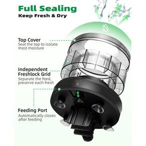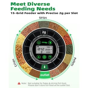 Papettly Alimentador automático de peixes para aquário – Dispensador automático de comida de peixe para aquário com cabo USB e visor LCD, alimentador de peixe com temporizador para férias de fim de semana, com colher alimentadora de peixes - Opções de alimentação versáteis: nosso alimentador automático avançado de peixes está equipado com 15 compartimentos projetados para acomodar uma ampla variedade de tipos de ração para peixes, garantindo que seus animais de estimação aquáticos recebam a nutrição ideal. Cada sessão de alimentação permite que até 3 porções sejam dispensadas, oferecendo flexibilidade nos horários de alimentação e atendendo a diversas necessidades alimentares (não adequado para alimentos em flocos ou camarões) - Alimentação de precisão: experimente o controle preciso da porção com nosso alimentador de peixe de última geração. Permite que você distribua até 2 g de comida por alimentação, garantindo que cada peixe receba a quantidade certa sob medida para suas necessidades dietéticas específicas. Este recurso ajuda a evitar a superalimentação e promove hábitos de peixe mais saudáveis ao longo do tempo - Programação inteligente: aproveite a flexibilidade de agendar até 3 mamadas diárias com frequências personalizáveis e alimentação diurna alternada, tudo gerenciado sem esforço através do visor LCD do nosso avançado alimentador automático de peixes - Design resistente à umidade: com portas de alimentação de fechamento automático, nosso alimentador automático de peixes garante que a comida permaneça seca e fresca, mantendo a nutrição ideal para seus animais de estimação aquáticos - Operação silenciosa: nosso alimentador automático avançado de peixe é projetado para operação silenciosa, emitindo menos de 30 dB de ruído. Isso garante que ele funcione silenciosamente e sem problemas, mantendo um ambiente tranquilo para você e seus peixes, dia e noite - Bateria de longa duração: equipada com uma bateria de 700 mAh, uma carga dura de 1 a 2 meses, tornando-a ideal para viagens prolongadas sem se preocupar com interrupções de alimentação - Opções de montagem versáteis: escolha entre um clipe ajustável ou ventosa para fácil instalação na parede ou tampa do tanque, cabendo na maioria dos tanques quadrados sem restrições de tamanho
