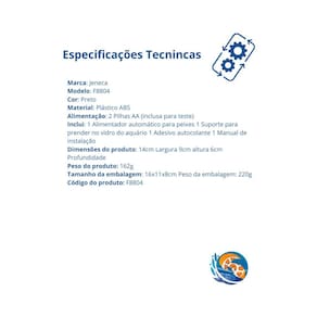 Inclui: 1 Alimentador automático para peixes 1 Suporte para prender no vidro do aquário 1 Adesivo autocolante 1 Manual de instalação