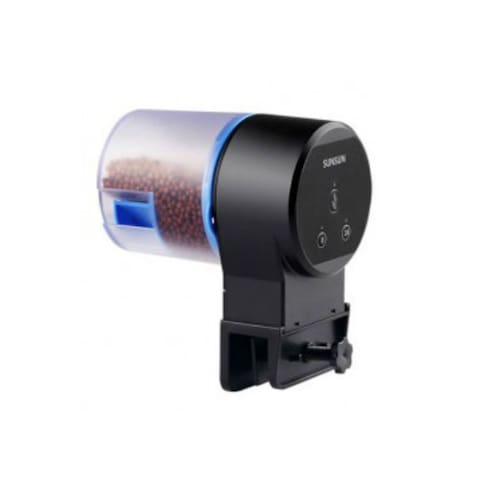 O Alimentador Automático Sunsun Ak-01 Para Peixes De Aquário permite que você observe o tempo e a dosagem corretos ao alimentar os habitantes de seu aquário, mesmo quando você não estiver em casa. Programação : uma ou duas vezes por dia 12/24 horas Possui dois recipientes removíveis para 50 e 100 gramas de alimento seco. O Sunsun AK-01 é equipado com um suporte para o vidro lateral do aquário. Em aquários com tampa superior fechada, pode ser Utilizado com fixação de tiras aderentes, colocado diretamente na tampa. Alimentação programável: uma ou duas vezes por dia. Alimentado por duas pilhas AAA não incluídas , normalmente leva 3-4 meses. Os recipientes são resistentes à umidade e mantêm os alimentos frescos. Alimentação manual e automática: Você pode ajustar os tempos de alimentação ou você pode iniciar uma alimentação imediatamente pressionando o botão "manual"