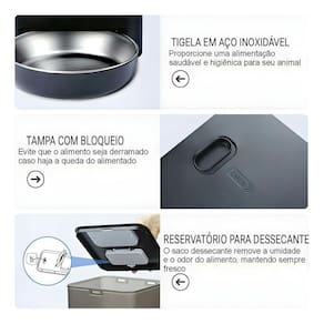 Com reservatório para dessecante - ração sempre fresquinha e sem umidade