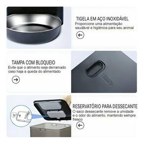 Com reservatório para dessecante - ração sempre fresquinha e sem umidade