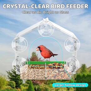 O alimentador de pássaros de janela cristalina HCGADON oferece observação de pássaros incomparável através de material ultratransparente, criando a ilusão de um único painel separando você dos pássaros. Cinco ventosas resistentes fornecem uma fixação segura no vidro limpo, garantindo uma fixação estável sem marcas ou quedas. A manutenção é fácil com sua bandeja de sementes removível – basta deslizá-la para fora para reabastecimento rápido ou limpeza completa, trava com segurança no lugar. Construído para uso durante todo o ano, este alimentador à prova de intempéries resiste ao sol, chuva e flutuações de temperatura. Orifícios de drenagem integrados mantêm as sementes secas. Desfrute de montagem sem ferramentas: qualquer pessoa (crianças/idosos incluídos) pode instalá-lo como blocos de construção. Seu design compacto também simplifica o armazenamento. Um presente ideal para amantes de pássaros, idosos ou gatos curiosos, o teto alto atrai cardeais, gaios azuis, tentilhões e muito mais. Com garantia de 1 ano e serviço responsivo.