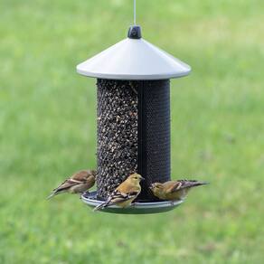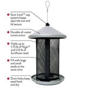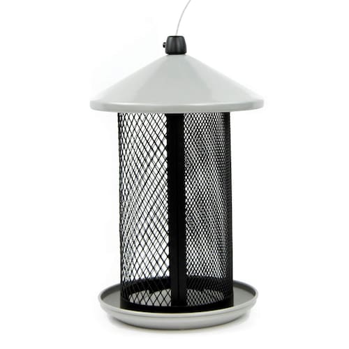 - Bandeja circular de sementes e superfície de malha atrai pássaros agarrados e empoleirados