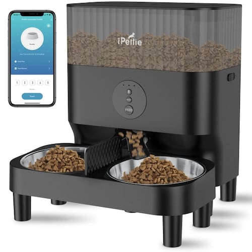 Alimentador WiFi automático para animais de estimação iPettie para 2 animais de estimação, capacidade de 5L/21 xícaras, 1-10 refeições por dia, altura ajustável da tigela, comedouro inteligente para cães e gatos com 2 tigelas de aço inoxidável, gravação de voz, controle de aplicativo WiFi 2.4G - Controle de aplicativos: alimente seus animais de estimação a qualquer hora e em qualquer lugar usando o aplicativo de controle inteligente. Defina 1-10 refeições por dia com 1-12 porções por refeição. Acompanhe os registros de alimentação e compartilhe o dispositivo com várias contas. O alimentador automático para gatos para alimentos secos suporta apenas a rede de 2,4 GHz. - Alimente 2 animais de estimação ao mesmo tempo: o comedouro automático iPettie para dois gatos vem com um recipiente de ração seca de 5L/170 onças, um divisor bidirecional e duas tigelas de 1 xícara para dividir as refeições igualmente entre dois animais de estimação ao mesmo tempo. - Fresco e seguro: o sistema de armazenamento com trava tripla mantém os alimentos frescos e crocantes. As tigelas de comida de aço inoxidável são duráveis e podem ser lavadas na máquina de lavar louça para mantê-las limpas e seguras para comer. - Nunca fique preso: equipado com um grande motor de torque, este alimentador automático duplo para gatos elimina o problema de congestionamentos de alimentos e perda de alimentação. Use apenas ração seca ou alimentos liofilizados entre 0,12” -0,51” (3 mm a 13 mm) de tamanho para obter melhores resultados. - Adequado para qualquer raça e em qualquer estágio da vida: a bandeja de comida elevada e inclinada de 7° reduz a tensão no pescoço do animal ao comer. Existem três alturas ajustáveis para atender diferentes alturas à medida que seu animal de estimação cresce. - Fonte de alimentação dupla: o alimentador temporizado para gatos iPettie usa um adaptador de alimentação plug-in de 5 V ou 3 pilhas alcalinas de célula D para fornecer energia. A fonte de alimentação da bateria foi projetada para alimentação de reserva. PARA USO A LONGO PRAZO, CONECTE O ADAPTADOR A UMA TOMADA ELÉTRICA.