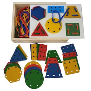 Alinhavos Formas Geométricas 24 pecas - Jott PlayDescrição do Produto:Jogo de Alinhavos com 24 Formas geométricas em madeira/MDF colorido.Trabalha as formas do quadrado, triângulo, círculo, retângulo, sextavado e trapézio isósceles.Todos nas 4 cores: azul, amarelo, vermelho e verde.Desenvolve: Raciocínio matemático, atenção, cálculo mental, fixação do conteúdo, integração em grupo.Acompanha 12 cadarços.Idade: A partir da 2 série / 8 anos.Acondicionado em caixa de madeira medindo: 30x16x4cm.Homologação Inmetro: IP-BRI-7489/2018-01