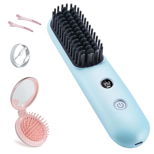 - Cuidados com os cabelos com 200 milhões de íons negativos: o alisador de escova de cabelo libera 200 milhões de íons negativos que neutralizam os íons positivos em seu cabelo, reduzindo a estática, eliminando o frizz e deixando seu cabelo liso e saudável. O design portátil sem fio facilita o estilo do seu cabelo em movimento, seja em casa ou viajando, você desfruta de cabelos perfeitamente estilizados sem a estática e o frizz que as ferramentas de estilo tradicionais costumam causar