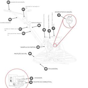 Equipada com uma caixa redutora, seu controle de velocidade é variável, conta com regulador das lâminas que varia de 0° a 15°, sendo ajustado de acordo com o estado de cura do concreto. A TPT900-XP é indicada para áreas de até 350m² ou para pisos onde tem muitas obstruções.