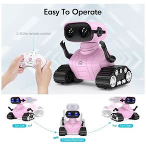 Aparência fantástica Este robô bonito e engraçado é projetado em 2 partes. A parte superior é um robô fofo com um par de olhos LED e o gesto pode ser ajustado. A parte inferior é um par de trilhos de tanque. Além disso, adotamos uma embalagem requintada para este robô. Será um ótimo presente de aniversário ou de Natal para seus filhos. Robô multifuncional olhos de LED acenderão assim que você ligar o robô, você também pode fechá lo ou deixá lo piscar remotamente função de voz ligue o robô, ele começará a falar com você em seu próprio idioma, ele também pode cantar 3 músicas que podem ser alternadas por controle remoto as trilhas do tanque deixe o robô avançar para a esquerda e direita, quando mudar para o modo de demonstração, ele começará a dançar. Especificação da bateria O robô rc é alimentado por uma bateria de lítio recarregável de 500 mAh que leva 120 minutos para ser totalmente carregada e pode funcionar por 100 minutos. Há também um cabo mini USB que permite carregá lo livremente. O controle remoto é alimentado por 2 pilhas AA não incluídas, que podem ser obtidas facilmente na . Controle remoto de 2,4 GHz Este robô de brinquedo RC opera por um controle remoto de 2,4 GHz. A distância do controle remoto é de até 32 pés sem obstrução. É muito fácil para as crianças operarem. O que você obterá 1 brinquedo robô, 1 controlador, 1 manual de instruções, 1 chave de fenda, 1 cabo USB Marca: Não Informado