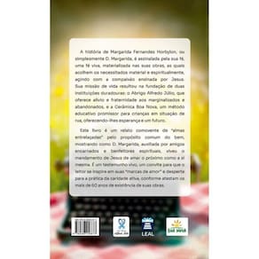 D. Margarida viveu o Evangelho com doçura, transformando sua fé em acolhimento e sua vida em um rastro constante de amor ao próximo. A história de Margarida Fernandes Horbylon, ou simplesmente D. Margarida, é assinalada pela sua fé, uma fé viva, materializada nas suas obras, as quais acolhem os necessitados material e espiritualmente, agindo com a compaixão ensinada por Jesus. Sua missão de vida resultou na fundação de duas instituições duradouras: o Abrigo Alfredo Júlio, que oferece alívio e fraternidade aos marginalizados e abandonados, e a Cerâmica Boa Nova, um método educativo promissor para crianças em situação de rua, oferecendo-lhes esperança e um futuro. Este livro é um relato comovente de “almas entrelaçadas” pelo propósito comum do bem, mostrando como D. Margarida, auxiliada por amigos encarnados e benfeitores espirituais, viveu o mandamento de Jesus de amar o próximo como a si mesma. É um testemunho vivo, um convite para que o leitor se inspire em suas “marcas de amor” e desperte para a prática da caridade ativa, conforme atestam os mais de 60 anos de existência de suas obras.