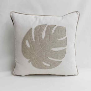 A Almofada 50x50 da linha Terracota, modelo 9841 da CortBrás, é a escolha perfeita para quem ama a tendência Urban Jungle com um toque sofisticado. Ela apresenta uma linda folha de Costela-de-Adão bordada em relevo, com textura e cor neutra, que contrastam elegantemente com o fundo claro. Este design moderno e orgânico cria um ponto focal relaxante e cheio de personalidade, ideal para trazer aconchego e estilo para sua sala ou varanda. O acabamento de alta qualidade, incluindo o vivo discreto nas bordas, assegura a durabilidade e o visual impecável da peça. Almofada CortBrás, linha Terracota 9841, à venda exclusivamente na Cerentini.