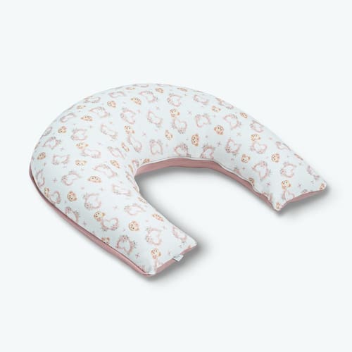 A Almofada de Amamentação Amor de Urso, é na cor rosa com estampa super fofinha na frente.