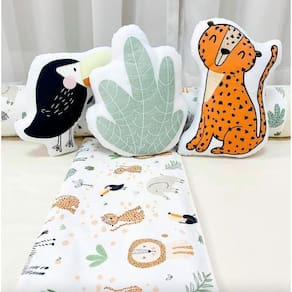 Almofada Bordada Onça Felice Safari Um complemento para deixar o quartinho de seu bebê muito mais charmoso, a Almofada Onça Felice Safari é perfeita para decorar e divertir Almofada com lindo bordado de onça da coleção Felice Safari, em tecido 100% algodão e com enchimento anti-alérgico em manta acrílica. Ean: 7908419127604
